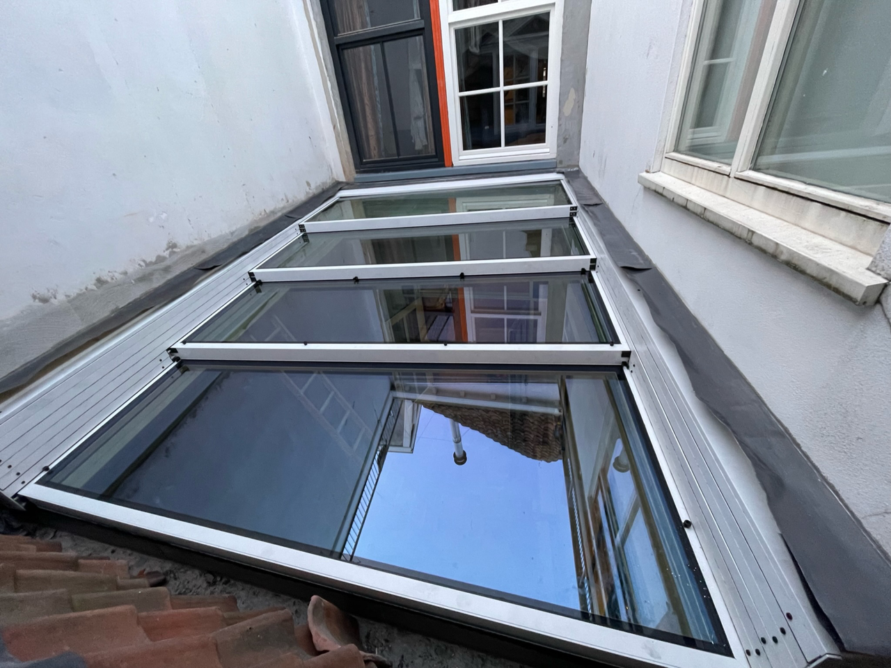 Hoe geniet u zowel in de zomer als de winter optimaal van een patio of binnentuin? In Leiden realiseerden we een serredak van glas. Daarmee overkapten we de patio, om er jaarrond gebruik van te maken. Sterker nog, we plaatsen een glazen schuifdak. Daardoor kunnen de bewoners het dak in de zomermaanden openen, om gewoon van de zon te blijven genieten zoals ze dat gewend waren.