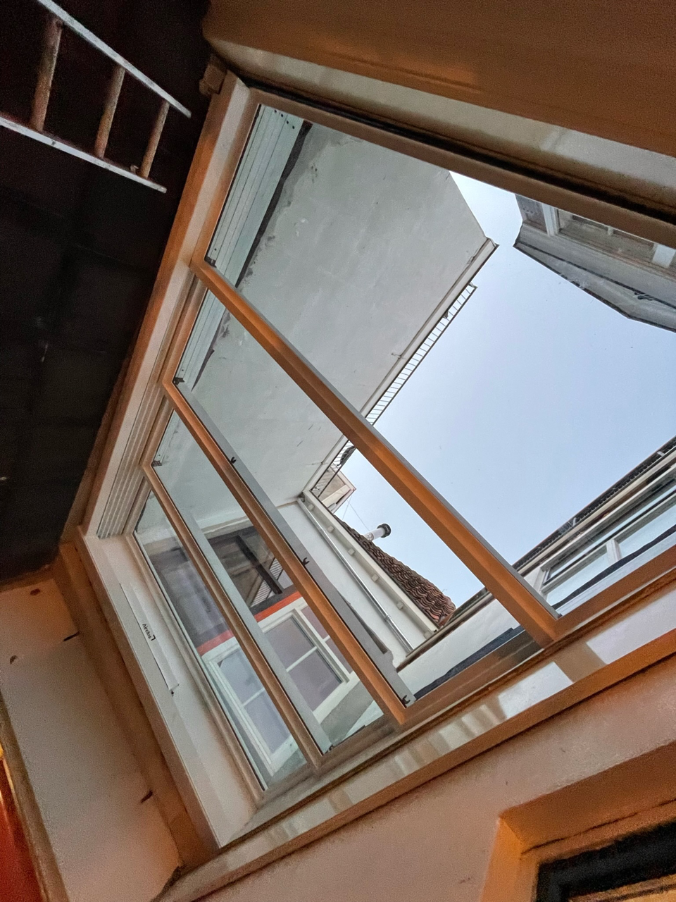 Het serre dak van glas plaatsten we midden in het centrum van Leiden. Dat vormde als project een uitdaging, omdat de ruimte beperkt is en we moesten zoeken naar mogelijkheden om alles op de juiste plek te krijgen. Er was geen achterom beschikbaar, dus de materialen moesten door de woonkamer. Het alternatief van een stevige kraan om over de huizen heen te tillen werd overwogen, maar bleek achteraf gelukkig niet nodig. We vonden samen met de bewoners de meest efficiënte oplossing, om geen onnodige kosten te maken.