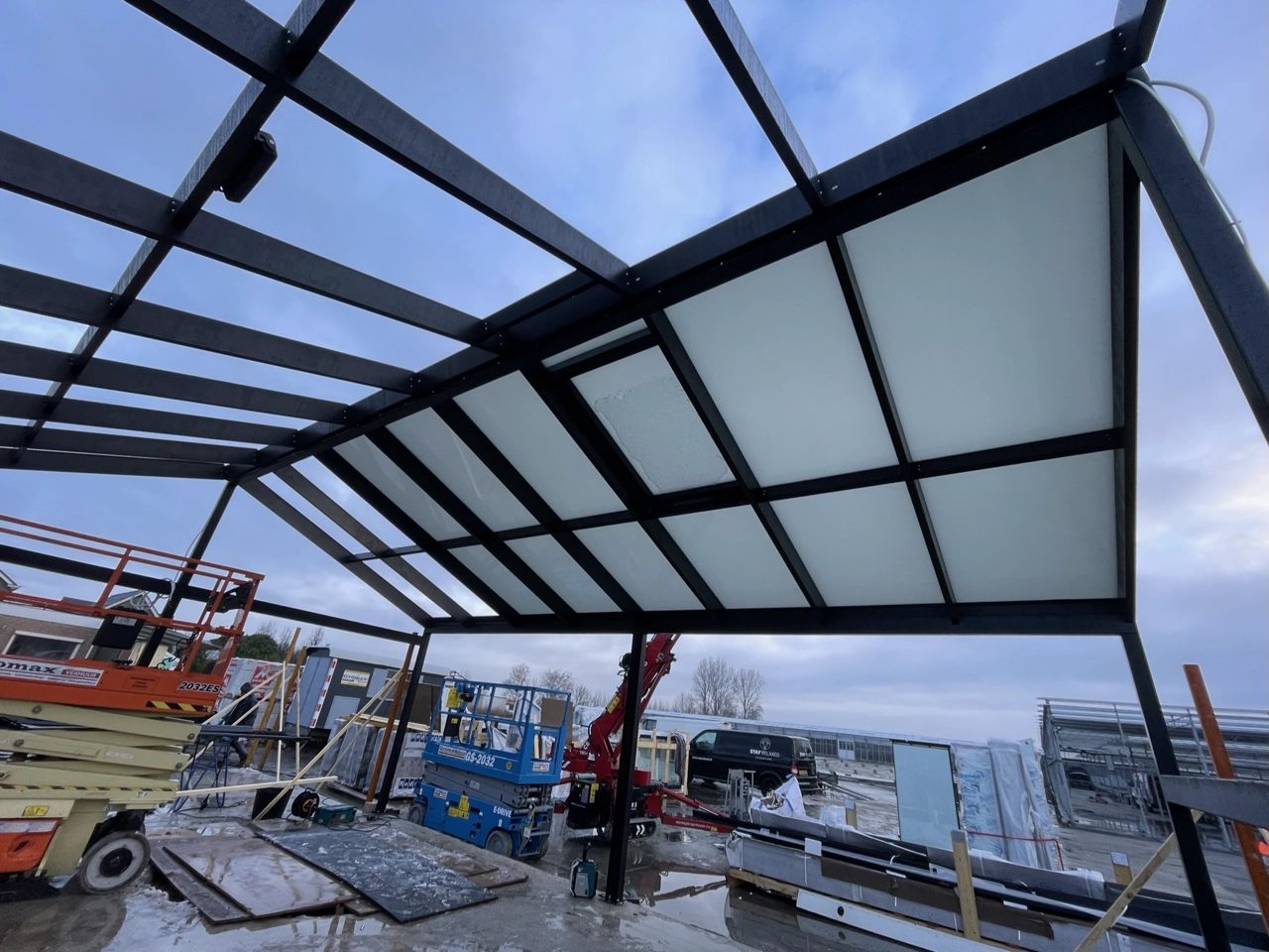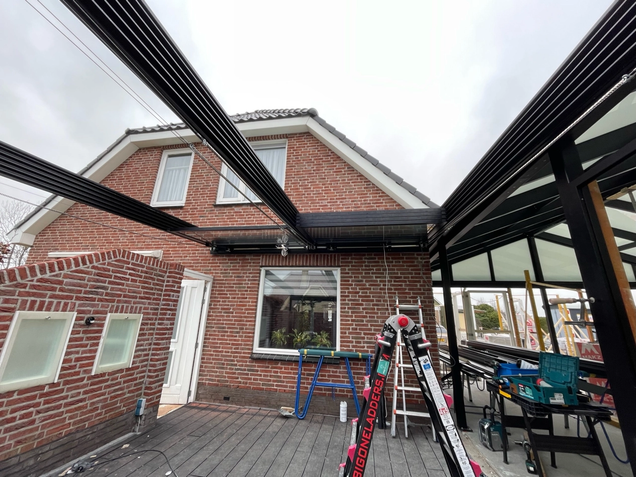 Voor een klant in Roelofarendsveen hebben wij deze prachtige serre en terrasoverkapping met automatisch glazen schuifdak mogen maken.