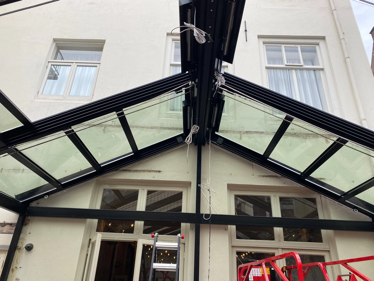 Het restaurant vroeg ons als serrespecialist, om mee te denken over een glazen overkapping.